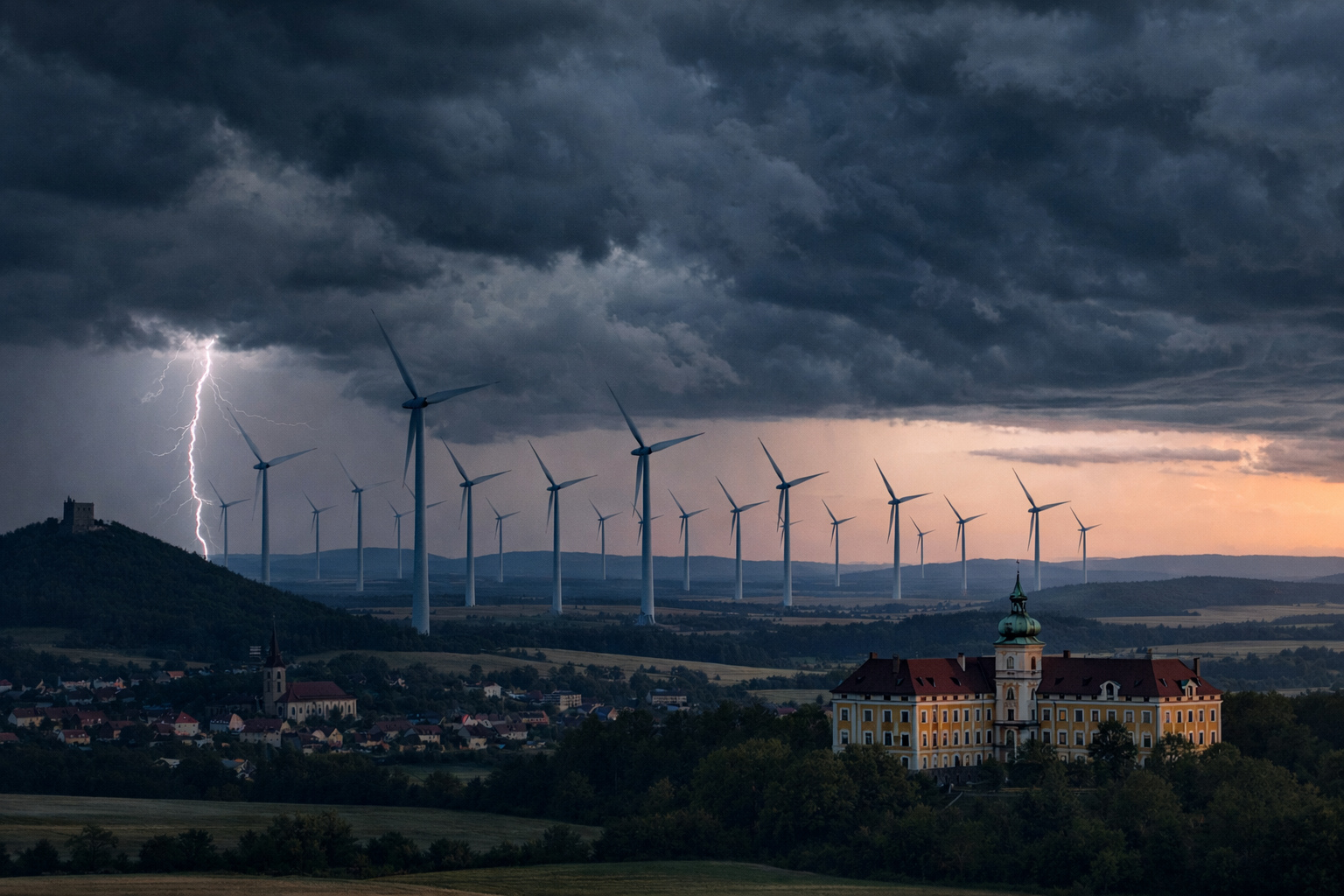 Obr. viz výše – ilustrační vizualizace sloužící k přiblížení možného rozsahu a dopadů záměru v krajině. Nejde o skutečný ani schválený stav.